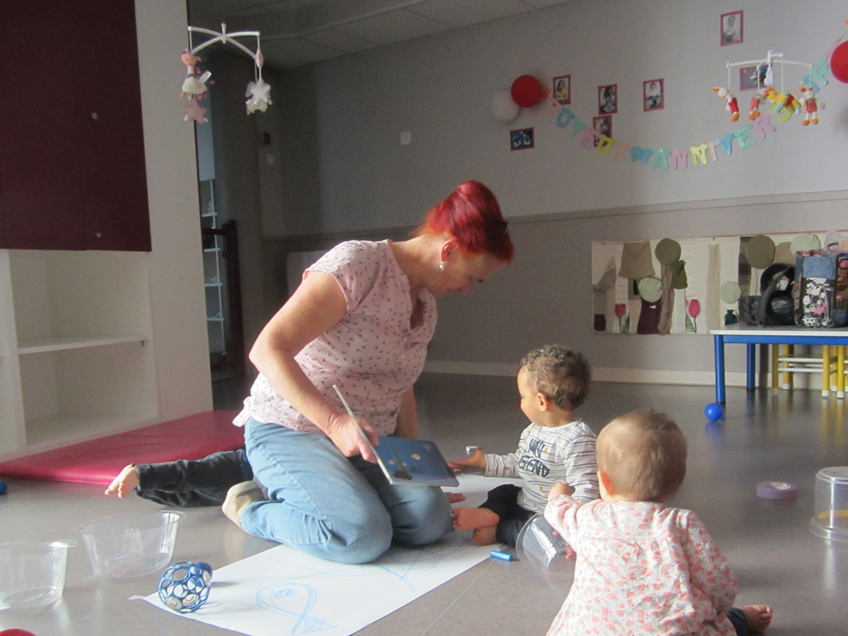 Une équipe et des rencontres pluridisciplinaires : professionnel(le)s de la Petite Enfance, conteuses, Plasticiennes, Intervenante musicale, artistes qui viennent parfois en résidence, psychologue, médecin…
