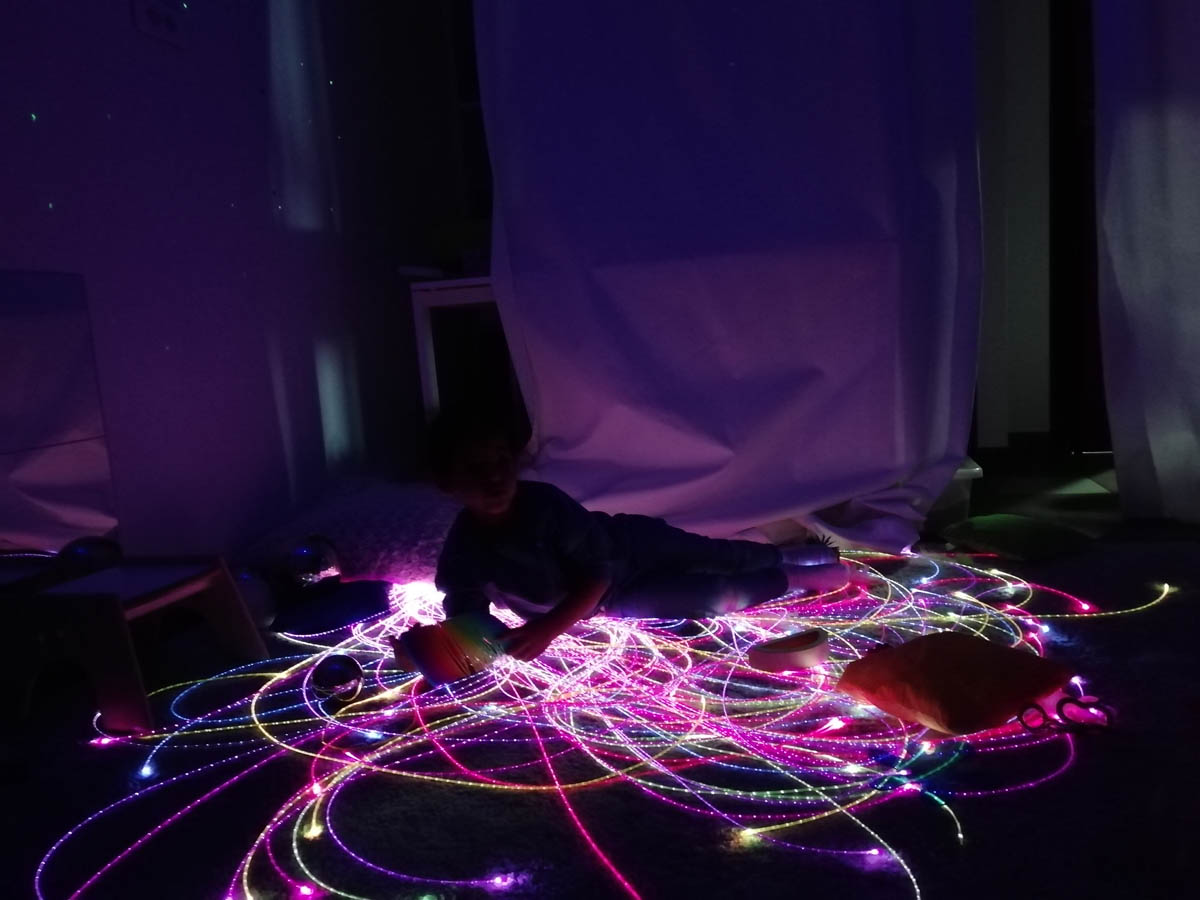 Snoezelen est un espace multi sensoriel permettant l’éveil, la stimulation des sens mais aussi le retour au calme.