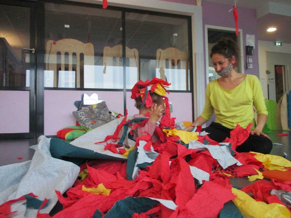 Cet espace a été mis en place au sein de la crèche, permettant à tous (enfants, parents et professionnels) de profiter d’un instant de détente.