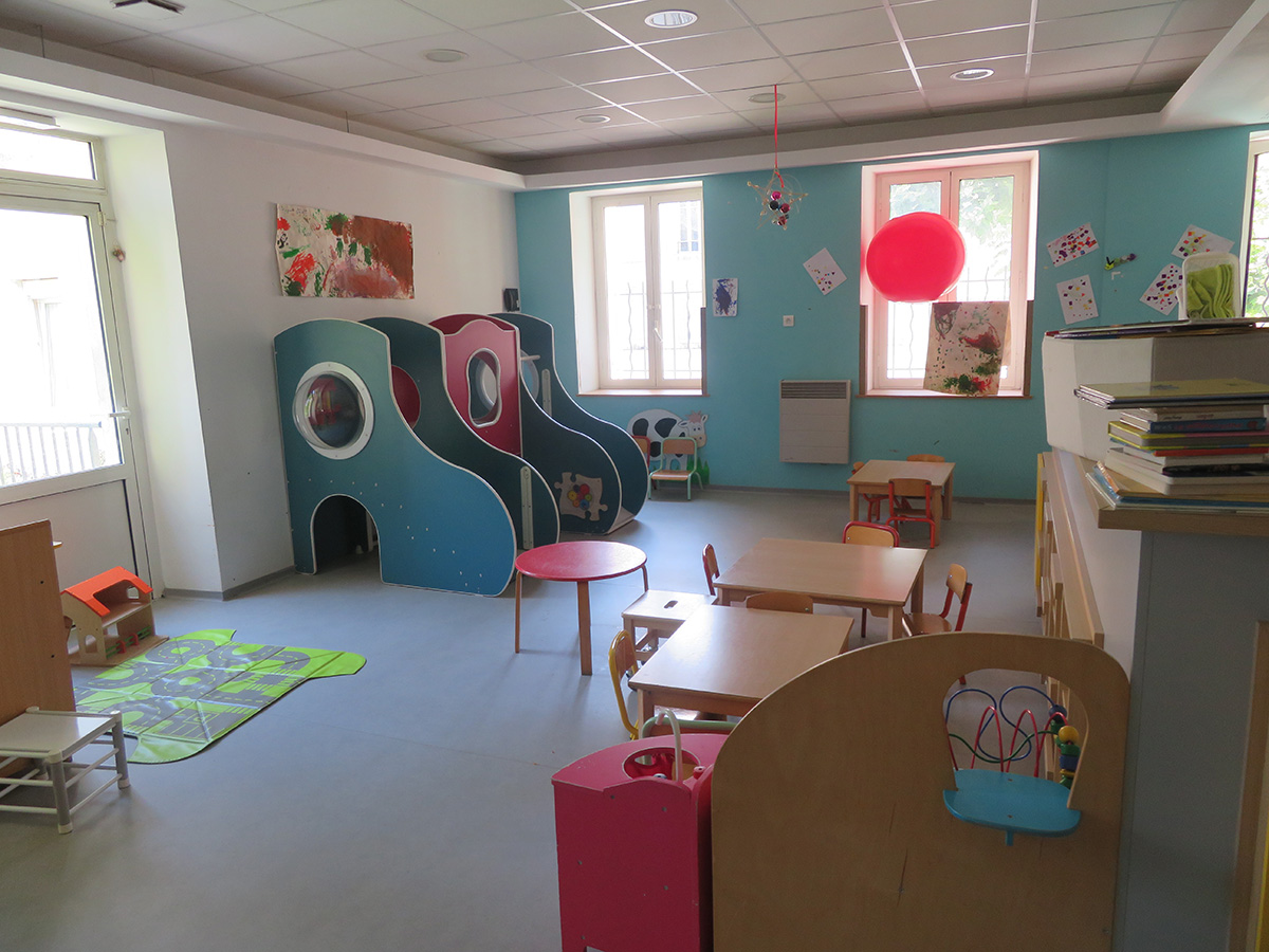 L’aménagement de l’espace intérieur et extérieur permet aux enfants d’évoluer librement et d’avoir accès à différents espaces de jeux : moteur, symboliques, coin calme...