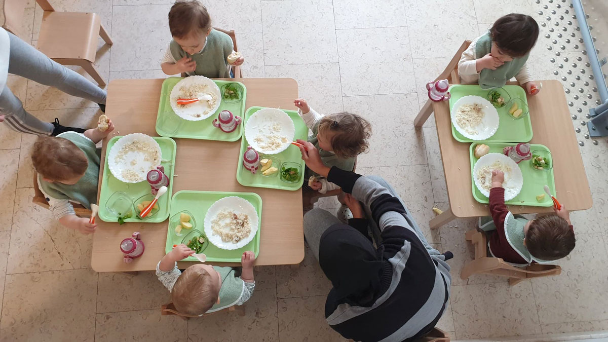 C'est également un temps fort du quotidien des enfants et des professionnelles qui les accompagnent. L'adulte s'attache à faire confiance à l'enfant pour développer son autonomie.Les déjeuners et goûters sont également l'occasion pour les enfants d'expérimenter le vivre ensemble et ainsi de les accompagner dans leur socialisation.